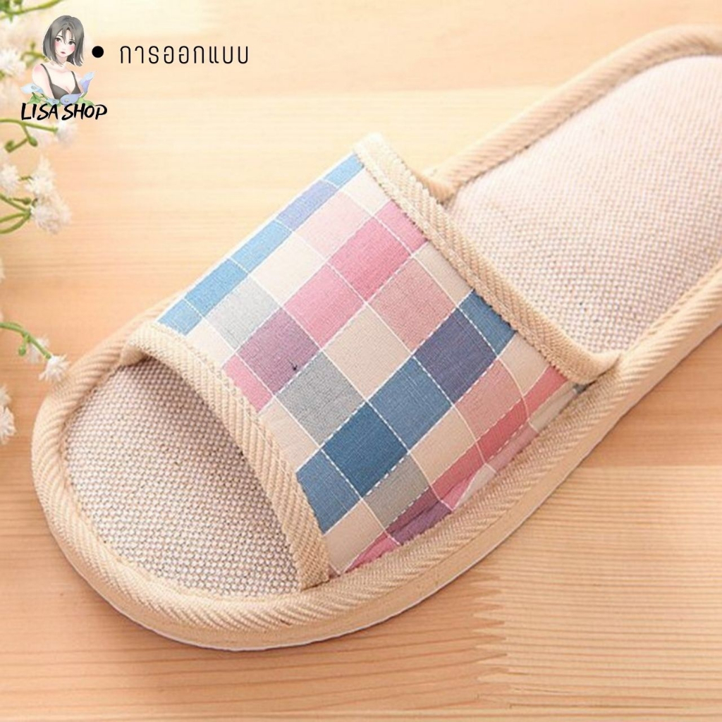รองเท้าใส่ในบ้าน home slipper รองเท้าใส่ในบ้าน ลายสก็อต เปิดนิ้วเท้า ราคาถูก T194