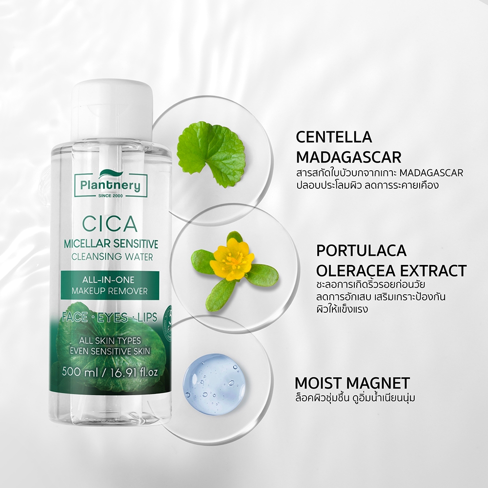 Plantnery CICA Micellar Cleansing Water 500 ml. แพลนท์เนอรี่ ซิก้า ไมเซล่า คลีนซิ่ง วอเตอร์ #คลีนซิ่งใบบัวบก