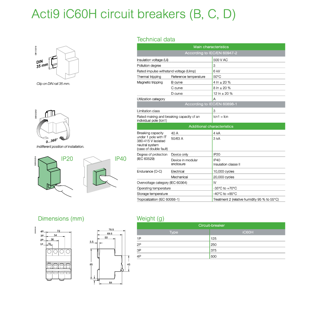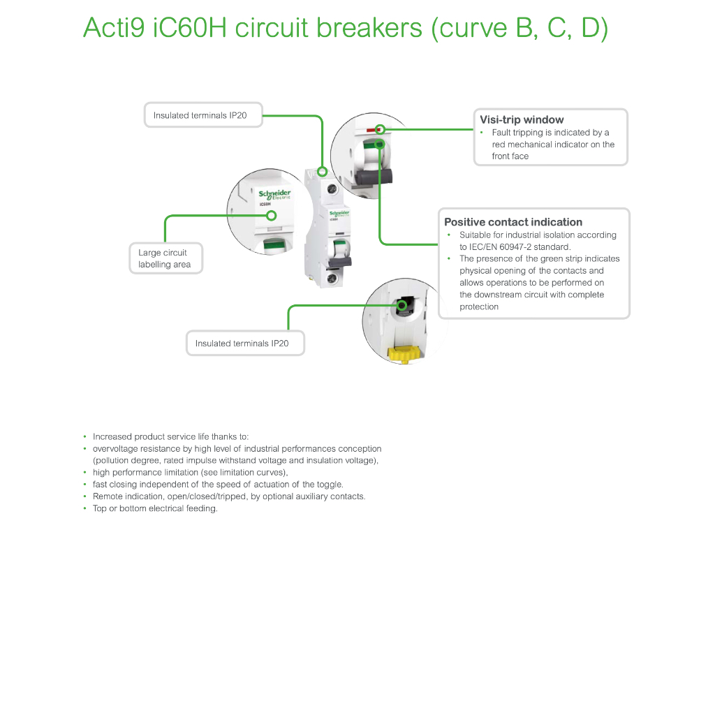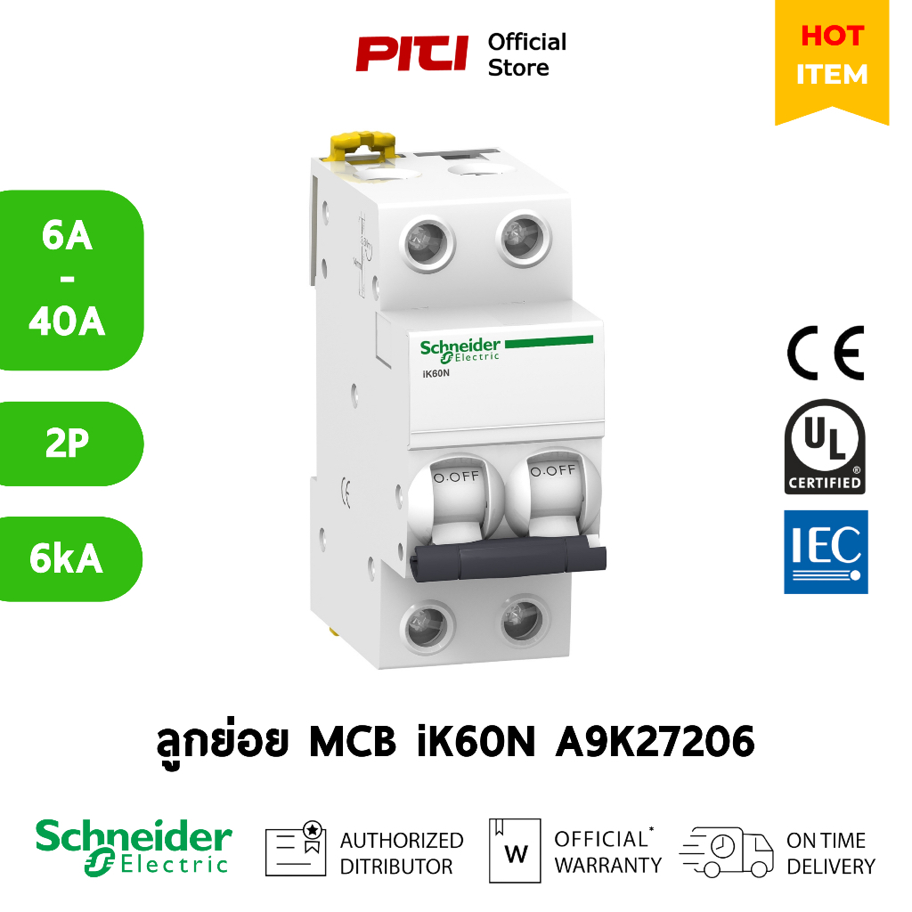 Schneider ลูกย่อย A9K272 6A - 40A 2P 6kA (IEC/EN 60898-1) iK60N C-curve Acti9 MCB