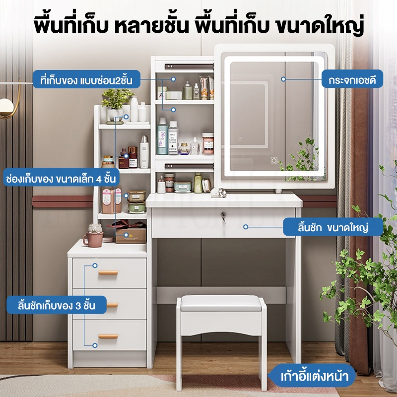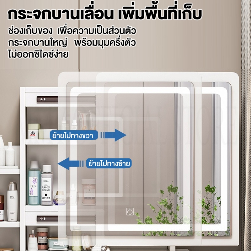 MMY【ถูกสุดใน ทุกแพลตฟอร์ม】โต๊ะเครื่องแป้ง โต๊ะแต่งหน้า กระจกLEDบานเลื่อนพร้อมเ สไตล์เกาหลี โต๊ะเคลือบด้วยสารเคลือบกันน้