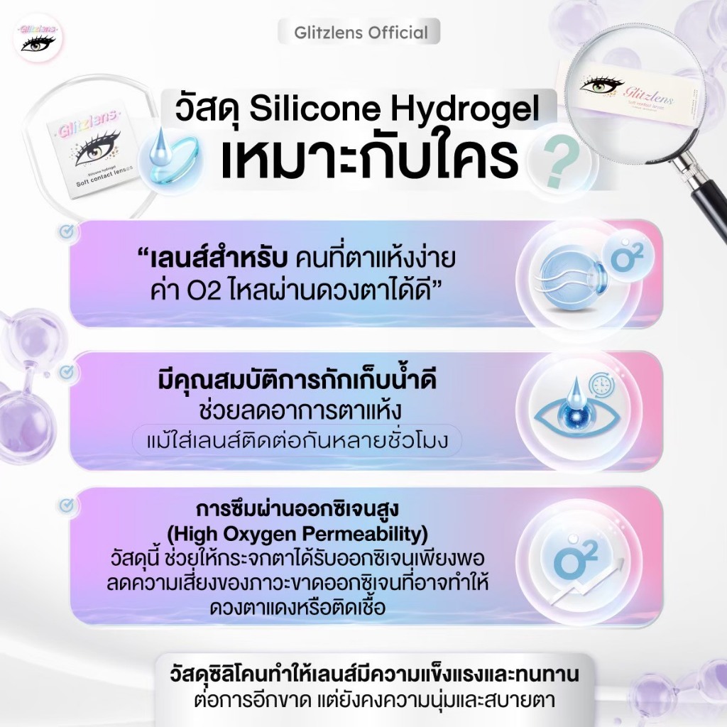 Glitzlens คอนแทคเลนส์ วัสดุ Silicone Hydrogel💧สี Roche Gray [Dia14.0] สำหรับคนตาแห้ง ล็อคความชุ่มชื้น ค่าo2ไหลผ่านได้ดี