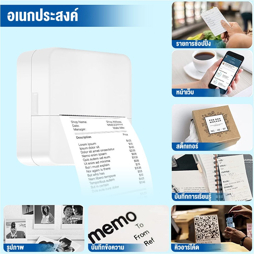 เครื่องปริ้นพกพา เครื่องปริ้นสติ๊กเกอร์ Printer wifi ไร้หมึก พิมพ์ที่อยู่ ไฟล์ ป้าย บาร์โค้ด ฉลาก แถมกระดาษสติกเกอร์