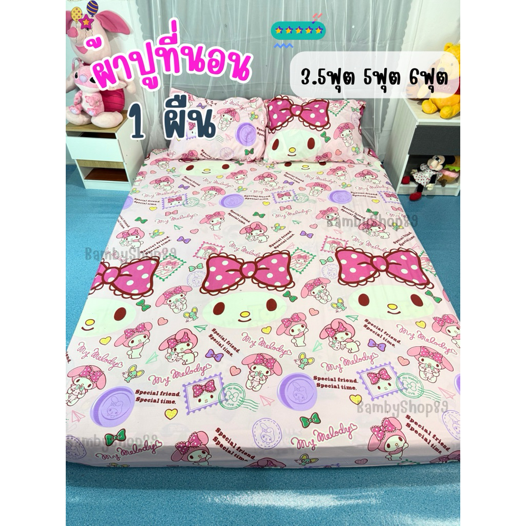 ผ้าปูที่นอน 1 ชิ้น 3.5/5/6 ฟุต รัดมุมแบบปกติ 4 มุม ลายการ์ตูนผ้าคอตตอล ที่นอนสูงไม่เกิน 8 นิ้ว