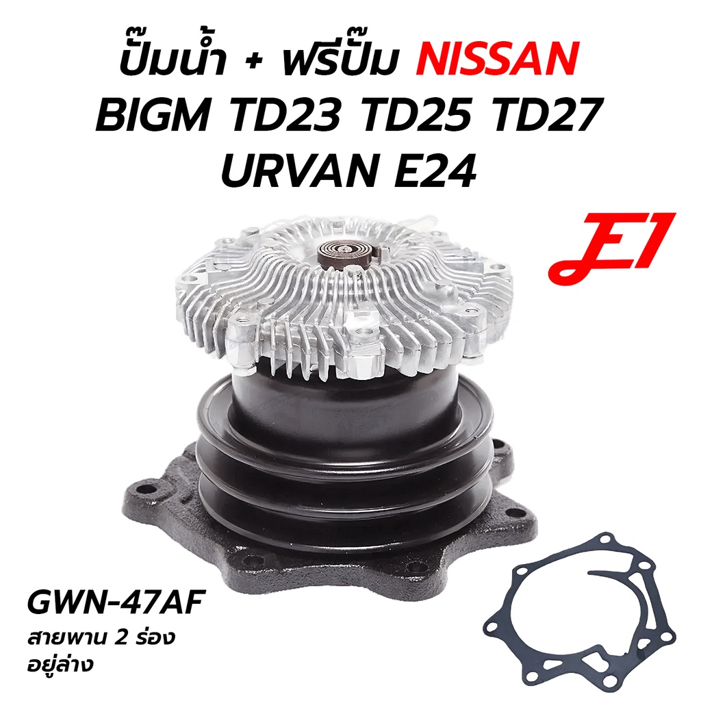 ปั๊มน้ำ + ฟรีปั๊ม NISSAN BIGM TD23 TD25 TD27 URVAN E24 (E1) GWN-47AF **สายพาน 2 ร่อง อยู่ล่าง