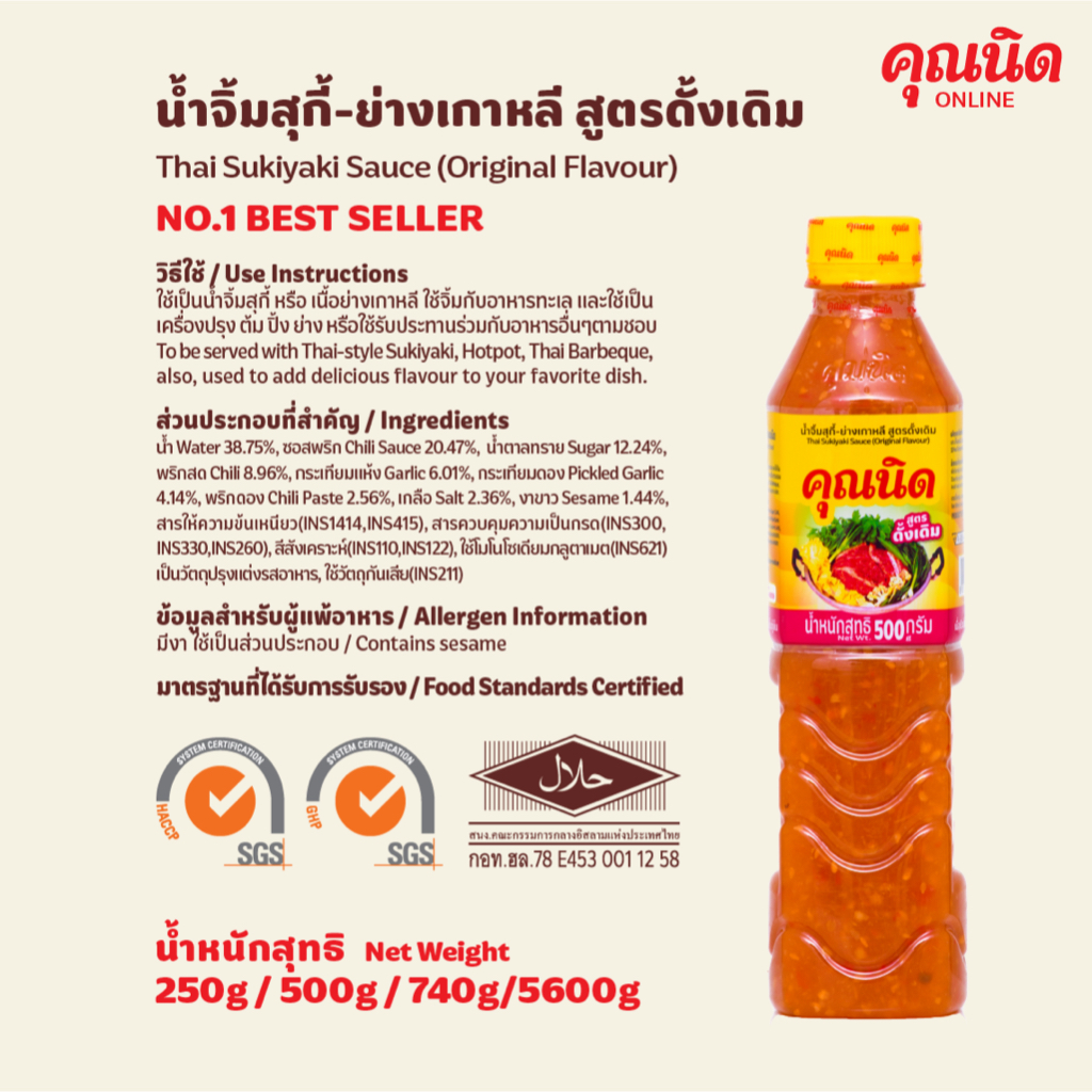 น้ำจิ้มแจ่วฮ้อนคุณนิด 250g 1 ขวด | น้ำซุปแจ่วฮ้อนสูตรเข้มข้น หอมสมุนไพร
