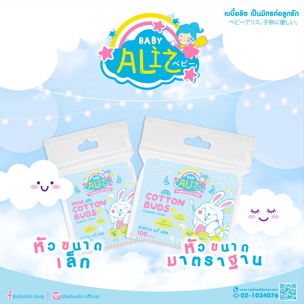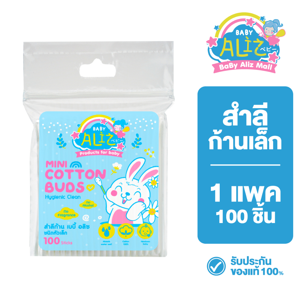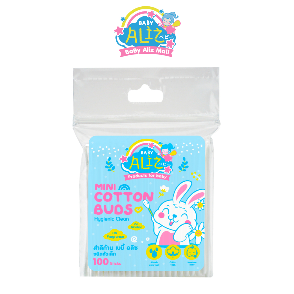 BABY ALIZ - สำลีก้านหัวเล็ก 100 ก้าน Cotton Bud อ่อนโยน ที่ปั่นหู สามารถใช้ได้กับเด็ก/ผู้ใหญ่