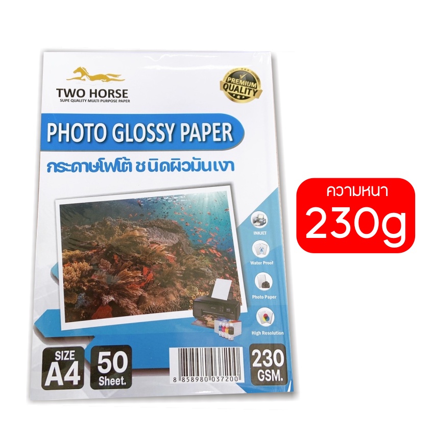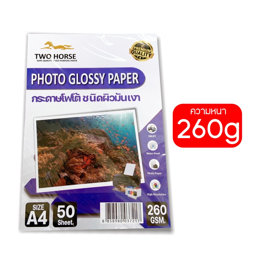 [มีส่งด่วน] กระดาษโฟโต้ TWO HORSES สำหรับเครื่องปริ้นอิงค์เจ็ท หนา 135-260g ขนาด A4 บรรจุ 50 แผ่น เกรดP
