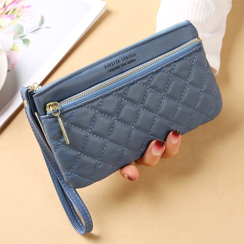 กระเป๋าคลัทช์ ทรงยาว จุของได้เยอะ แบบบาง แต่งซิป ใส่โทรศัพท์มือถือได้ สไตล์เกาหลี สําหรับผู้หญิง