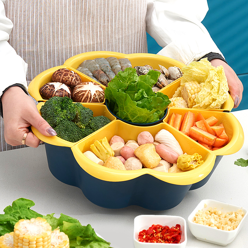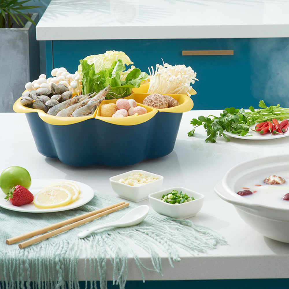 HHsociety ตะกร้าใส่ผัก หมุนได้ แยกเป็นช่องๆ ที่้ล้างผัก ตะกร้าล้างผัก