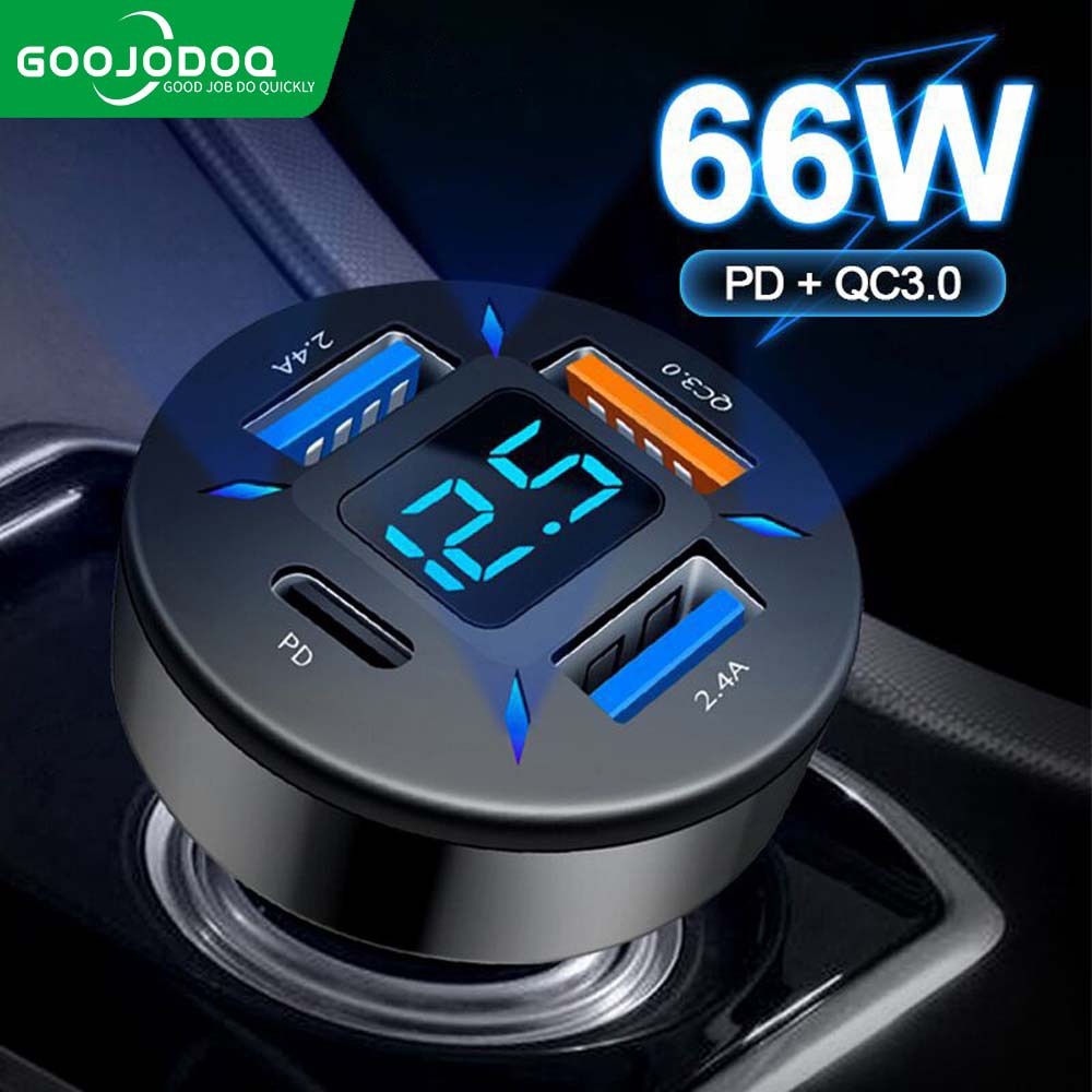 GOOJODOQ ที่ชาร์จในรถ ที่ชาร์จเสียบที่จุดบุหรี่ อะแดปเตอร์ 12V-24V 4พอร์ต QC3.0 USB Quick charger PD