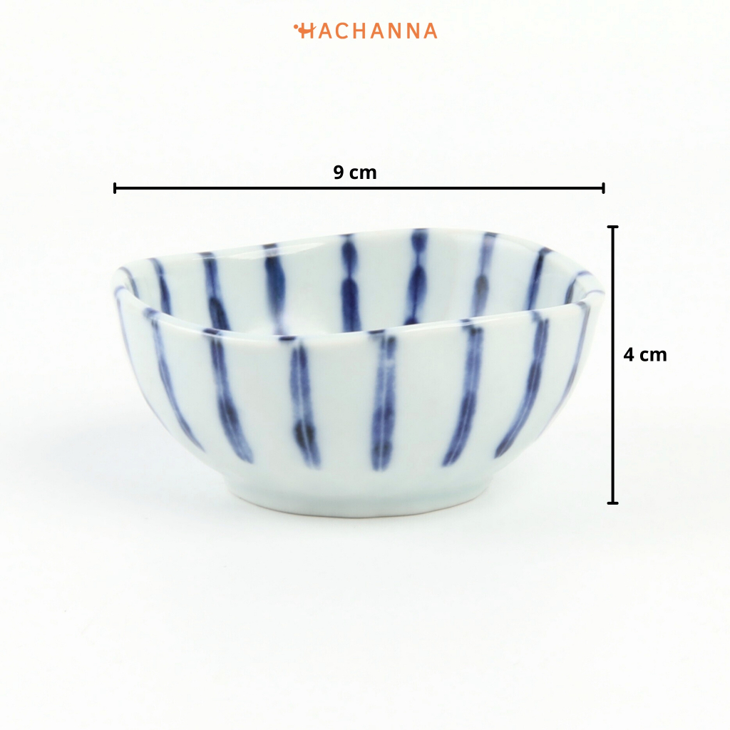 ถ้วยน้ำจิ้มจตุรัสลายขีดสีน้ำเงิน (Made in Japan)