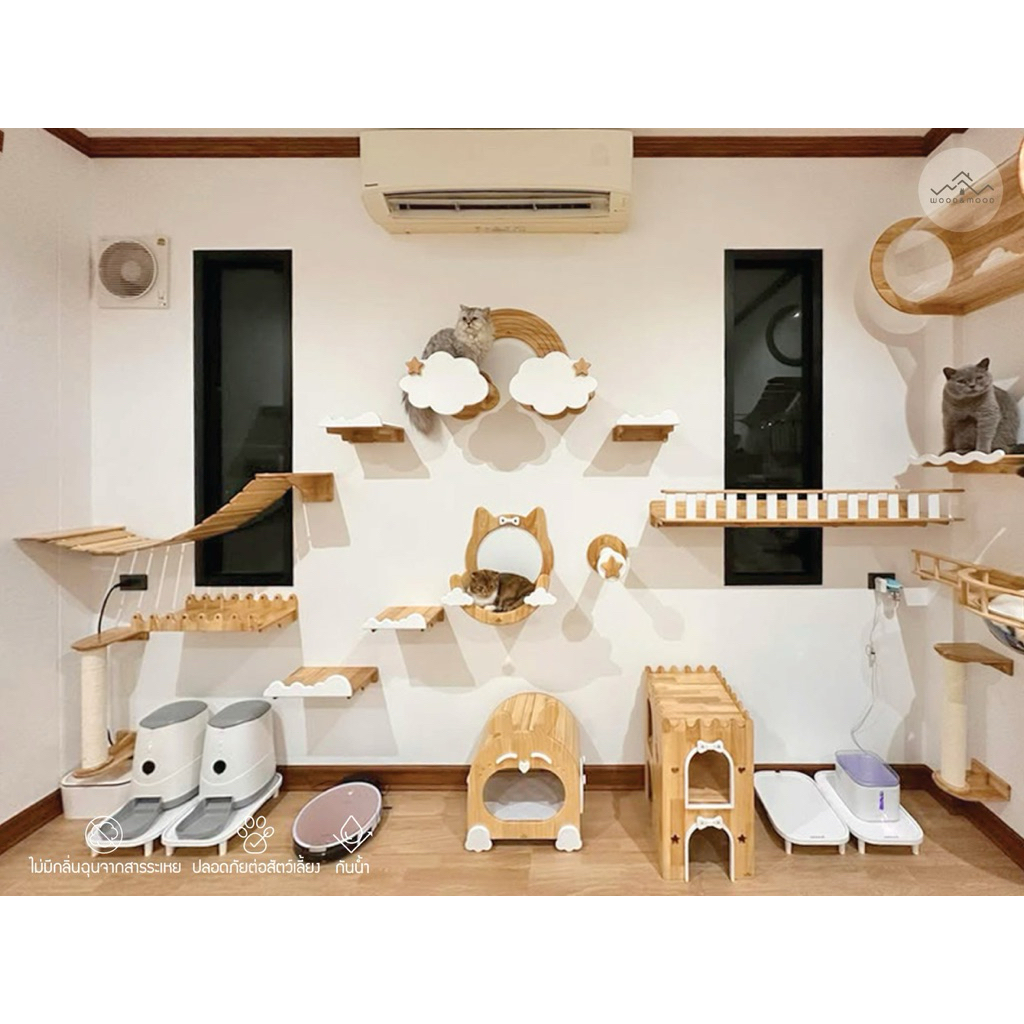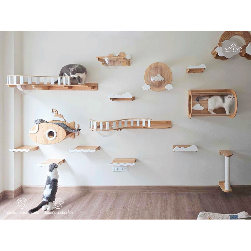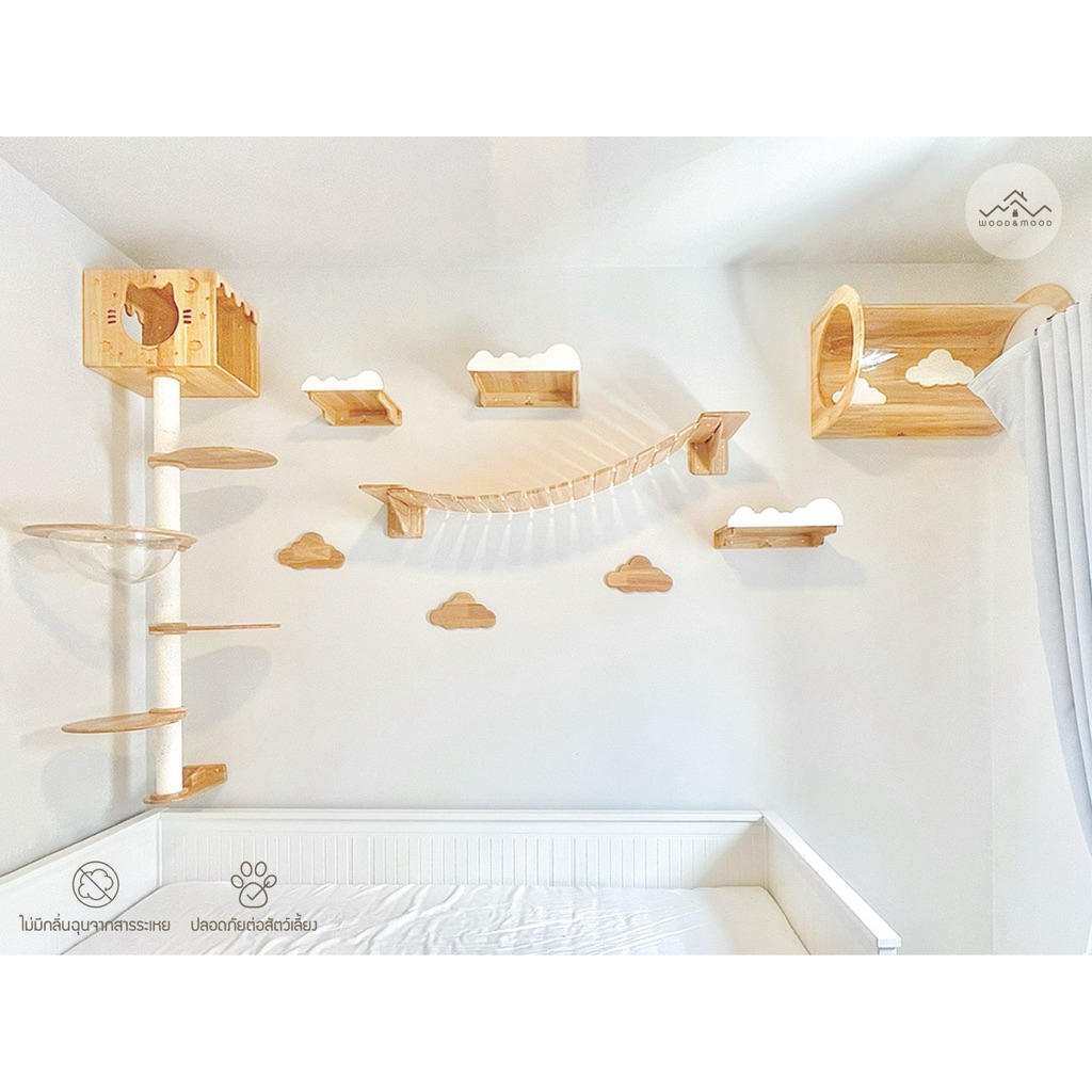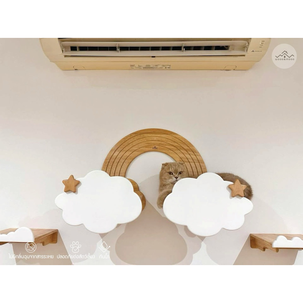 สะพานแมว กล่องแมวติดหนัง สะพานสายรุ้ง (ชิ้นใหญ่) [Wood&Mood] TH