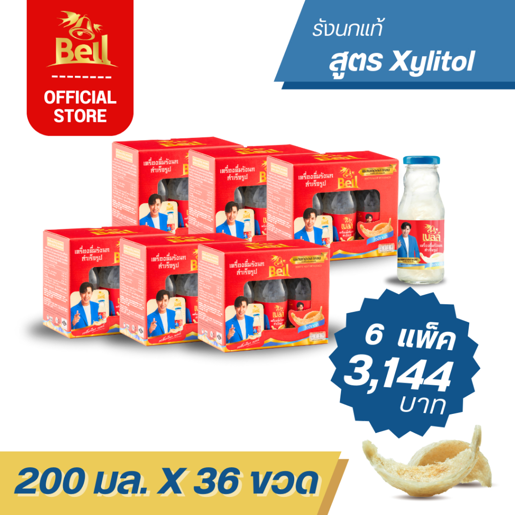ฺBell รังนก ขนาด 200 มล สูตร Rock Sugar เนื้อรังนกเยอะ เนื้อแน่น ไม่คาว 6 แพ็ค (6x6 ขวด) ส่งฟรี!!
