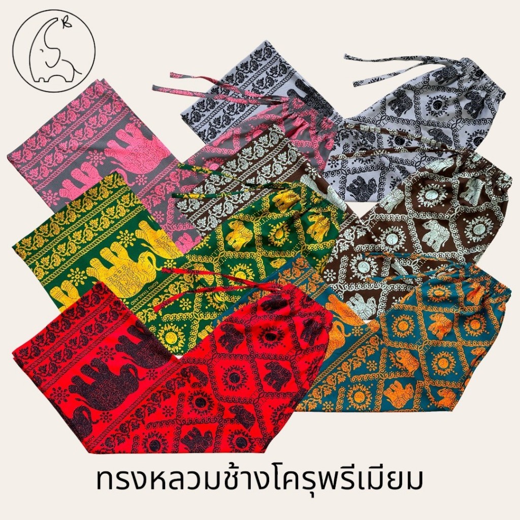 KORU กางเกงขายาวทรงหลวม ลายช้างโครุพรีเมียม