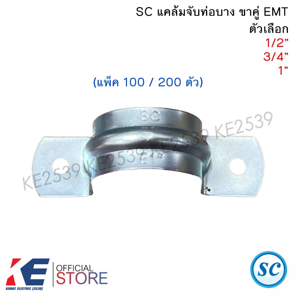 SC แคล้มจับท่อบางขาคู่ E 1/2" 3/4" 1" (แพ็ค 100 / 200 ตัว) แคล้มจับท่อ แคล้มยึดท่อ EMT