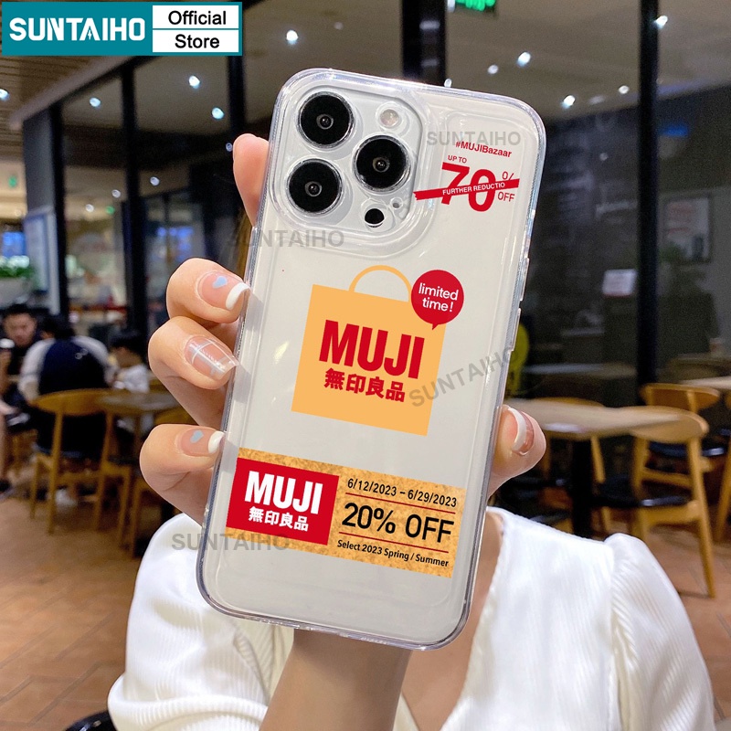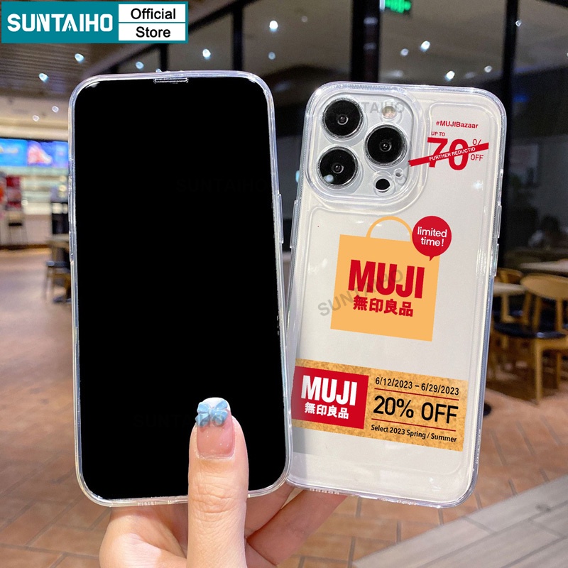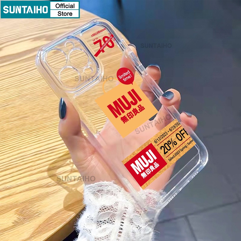 Suntaiho เคสโทรศัพท์มือถือแบบนิ่ม ใส กันกระแทก ลายฉลากสินค้า Muji ตลก พรีเมี่ยม สําหรับ IPhone 11 Pro Max 12 13 14 15 Pro Max Xr X XS Max IP 7 8 Plus