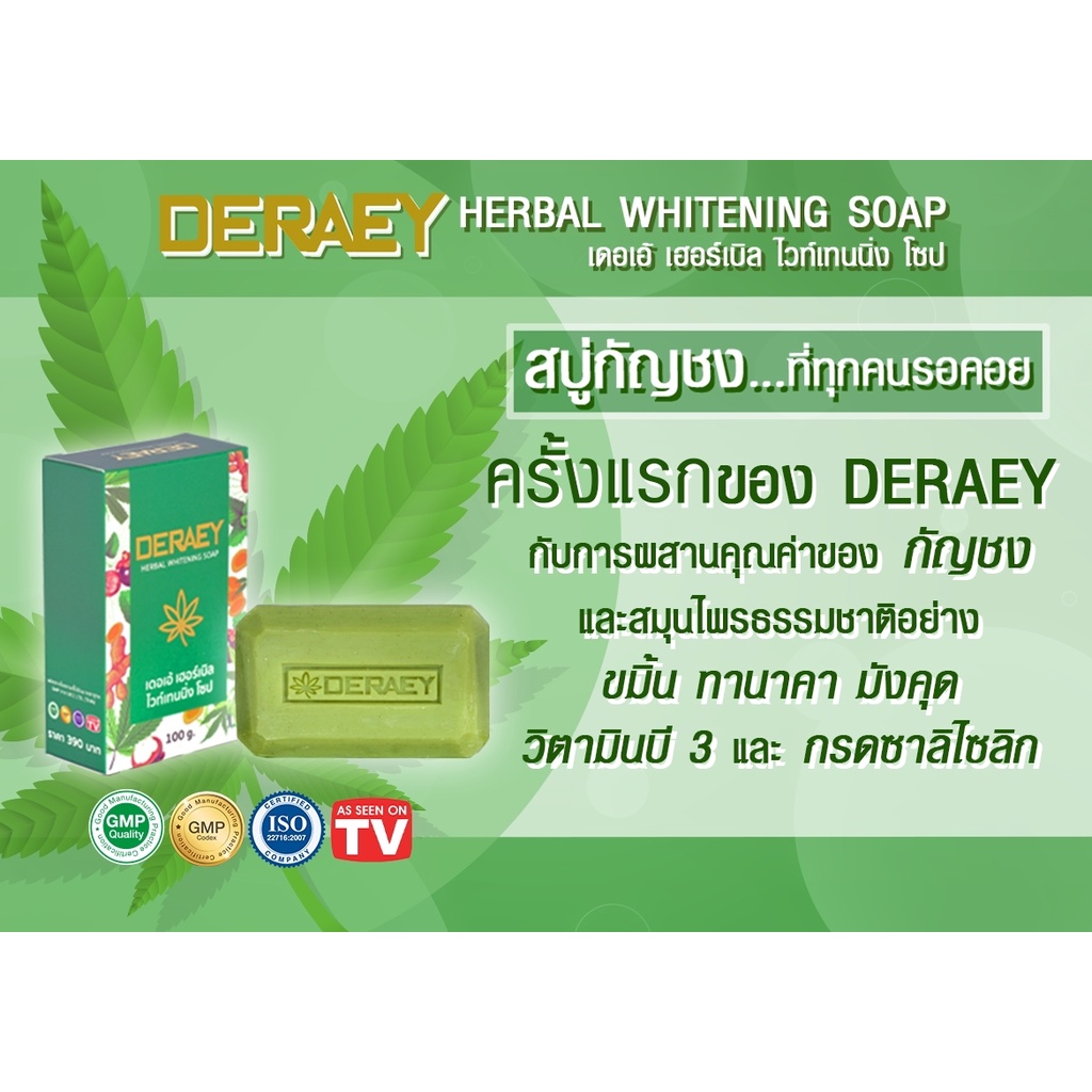 ใหม่ สบู่เดอเอ้ สบู่สมุนไพร Deraey สบู่เซรั่ม ล้างหน้า อาบตัว ทานาคา ขมิ้น มังคุด ไว้เทนนิ่ง 100 กรัม 20 กรัม