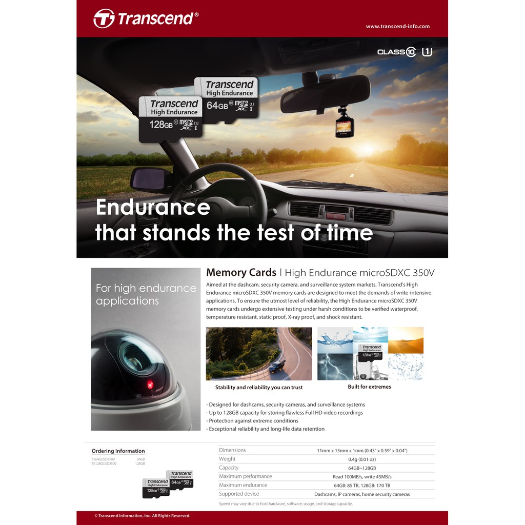 Transcend MicroSD Card 128GB :High Endurance : USD350V : รับประกัน 2 ปี-มีใบกำกับภาษี-TS128GUSD350V