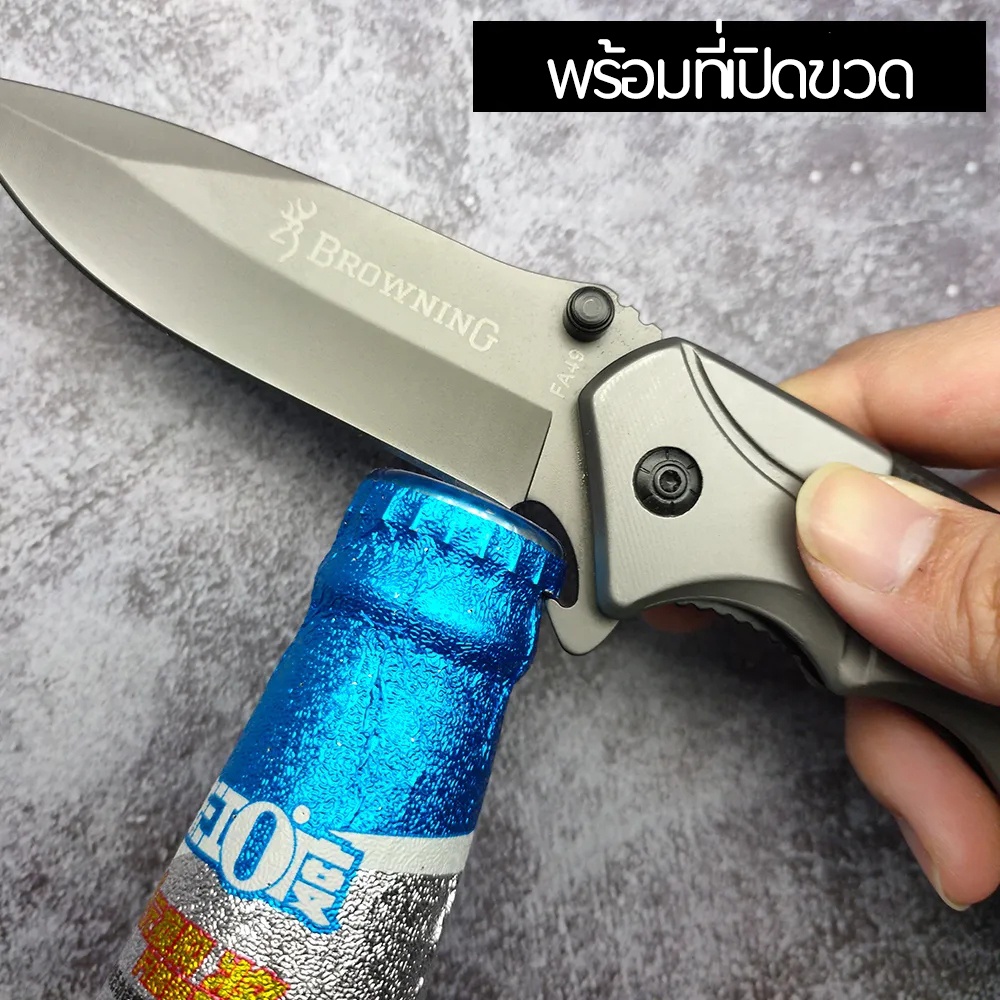 มีดพับพกพา มีดเดินป่า พร้อมค้อนทุบกระจก ที่ตัดเชื้อ ที่เปิดขวด Browning 22cm Folding Outdoor Camping Knife