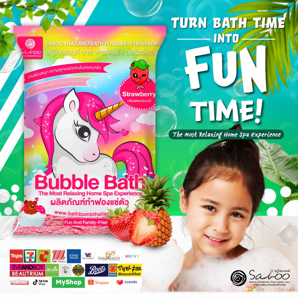 บับเบิ้ล บาธพาวเดอร์ ผงสบู่ทำฟองสำหรับแช่ตัว กลิ่นสตรอว์เบอร์รี่ ขนาด 100 กรัม - BUBBLE BATH POWDER - STRAWBERRY 100g