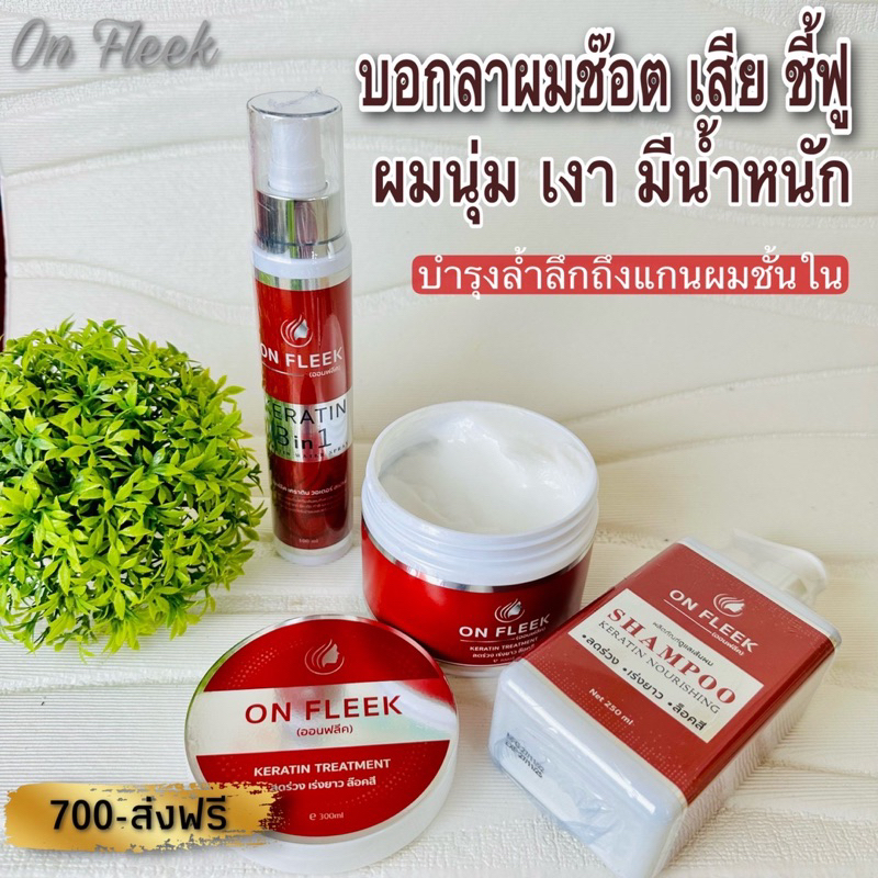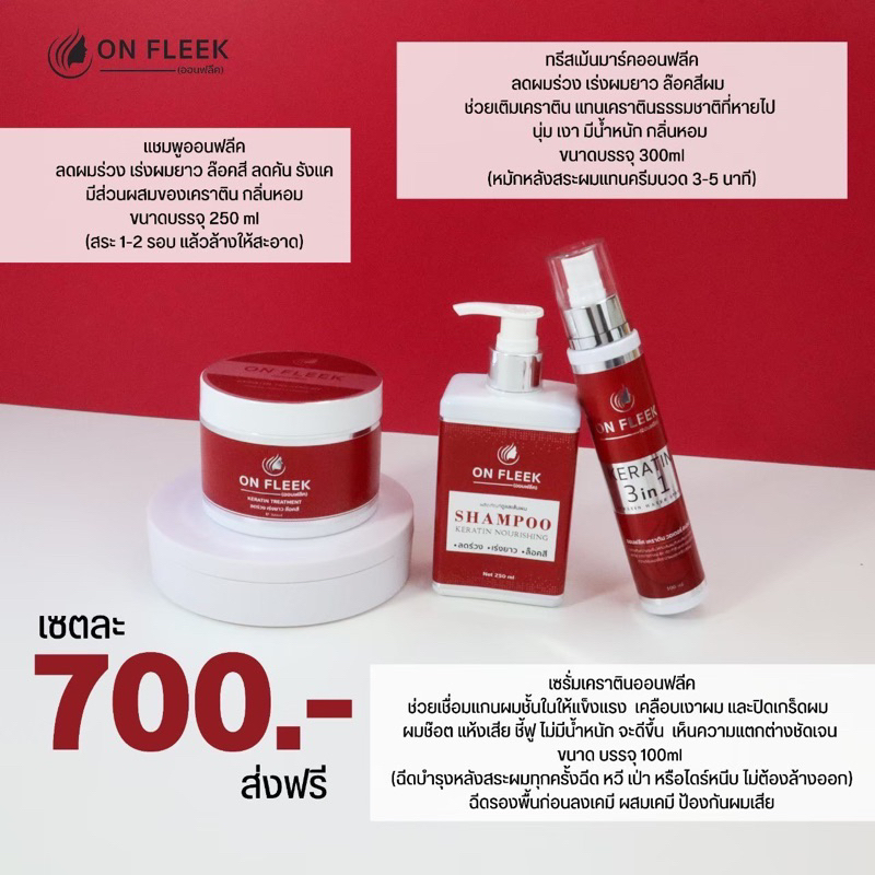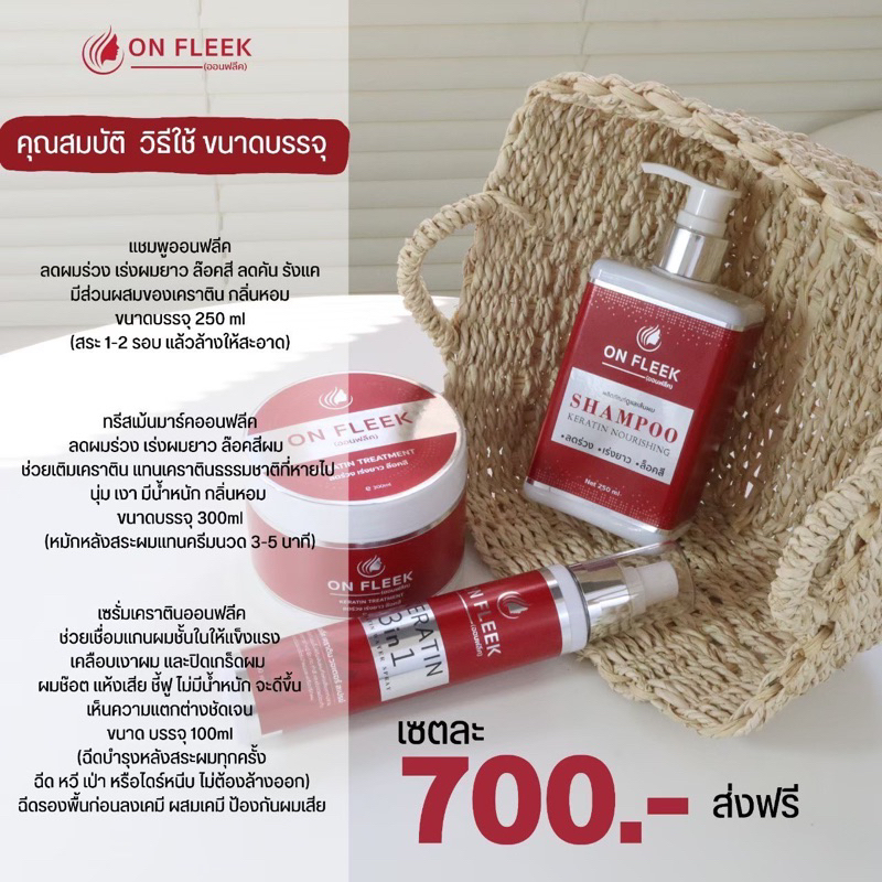🌸 Onfleek Keratin 3in1 ครบเซ็ต 3 ชิ้น 🌸👉 แชมพู,มาร์ค,เซรั่ม ช่วยฟื้นฟูผม แห้งเสีย ลดร่วง ล็อคสีผม [ ส่งฟรี+ปลายทาง ]