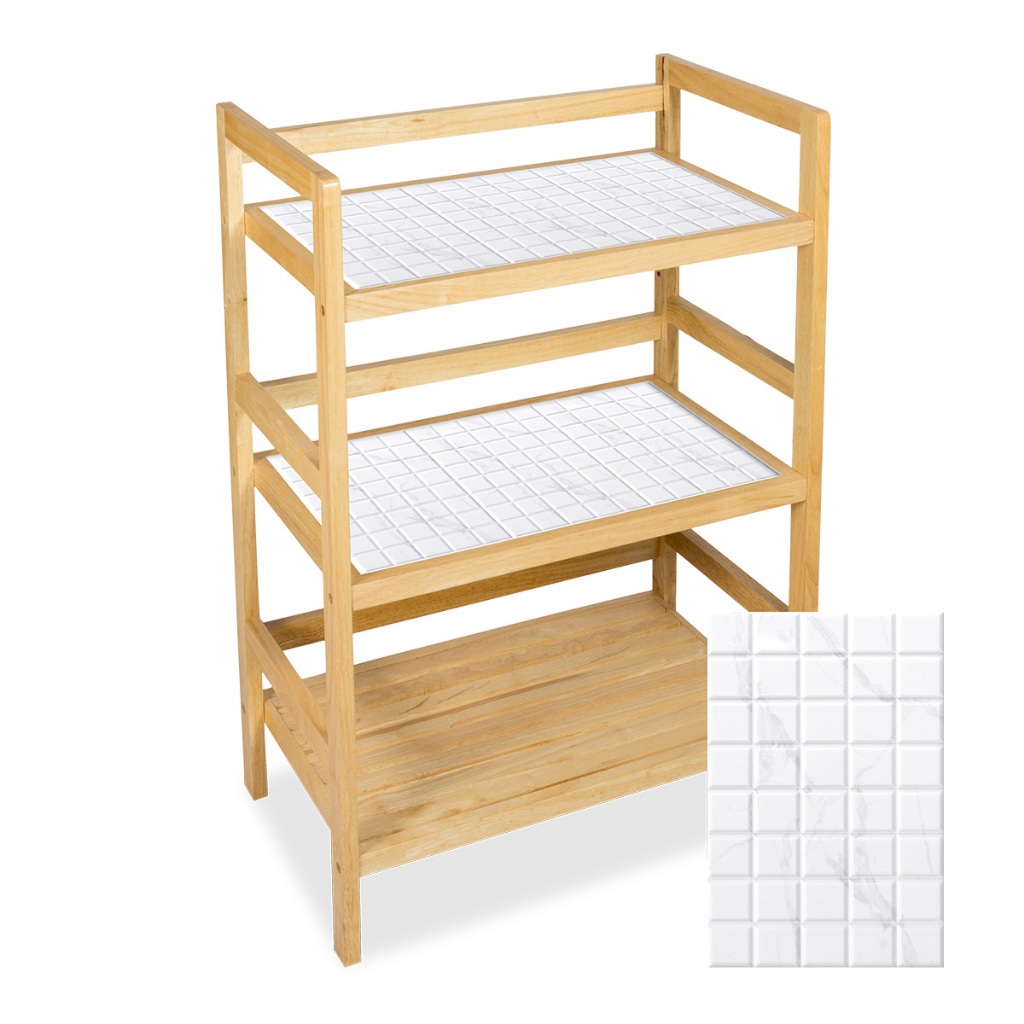 3ชั้นวางของ หน้ากระเบื้อง มีหลายสี Size M แข็งแรง รับน้ำหนักได้เยอะ ไม้ยางพารา The Woodern House