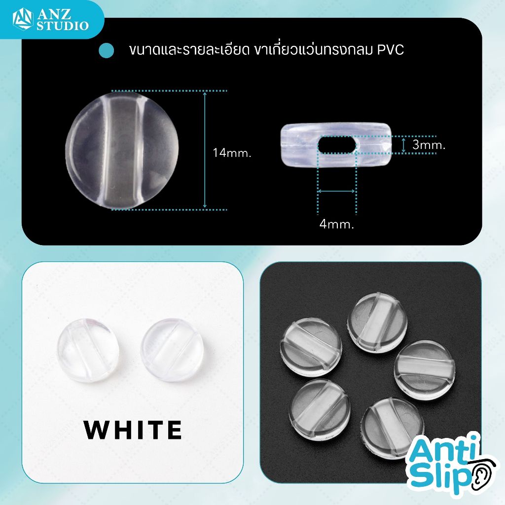 ANZ STUDIO ซิลิโคนสวมขาแว่นตา เกี่ยวหูแว่นตา ทรงกลม เนื้อ PVC 1คู่ สีขาว กันลื่น กันหลุด กระชับแว่น