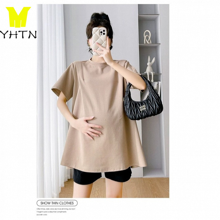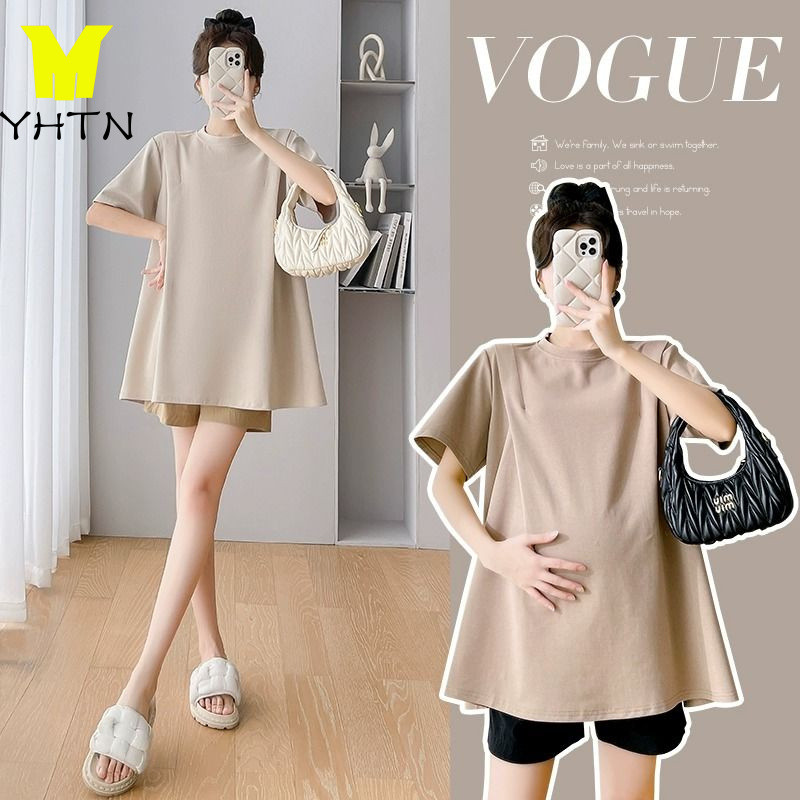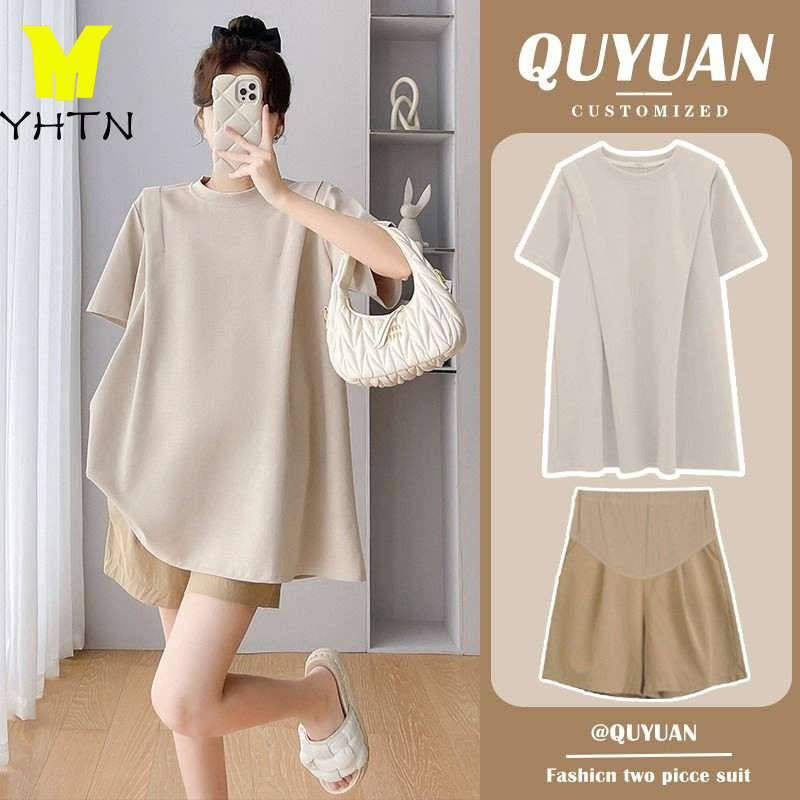 YHTN ชุดเสื้อยืดแขนสั้น กางเกงขาสั้น ทรงหลวม แฟชั่นฤดูร้อน สําหรับสตรีตั้งครรภ์