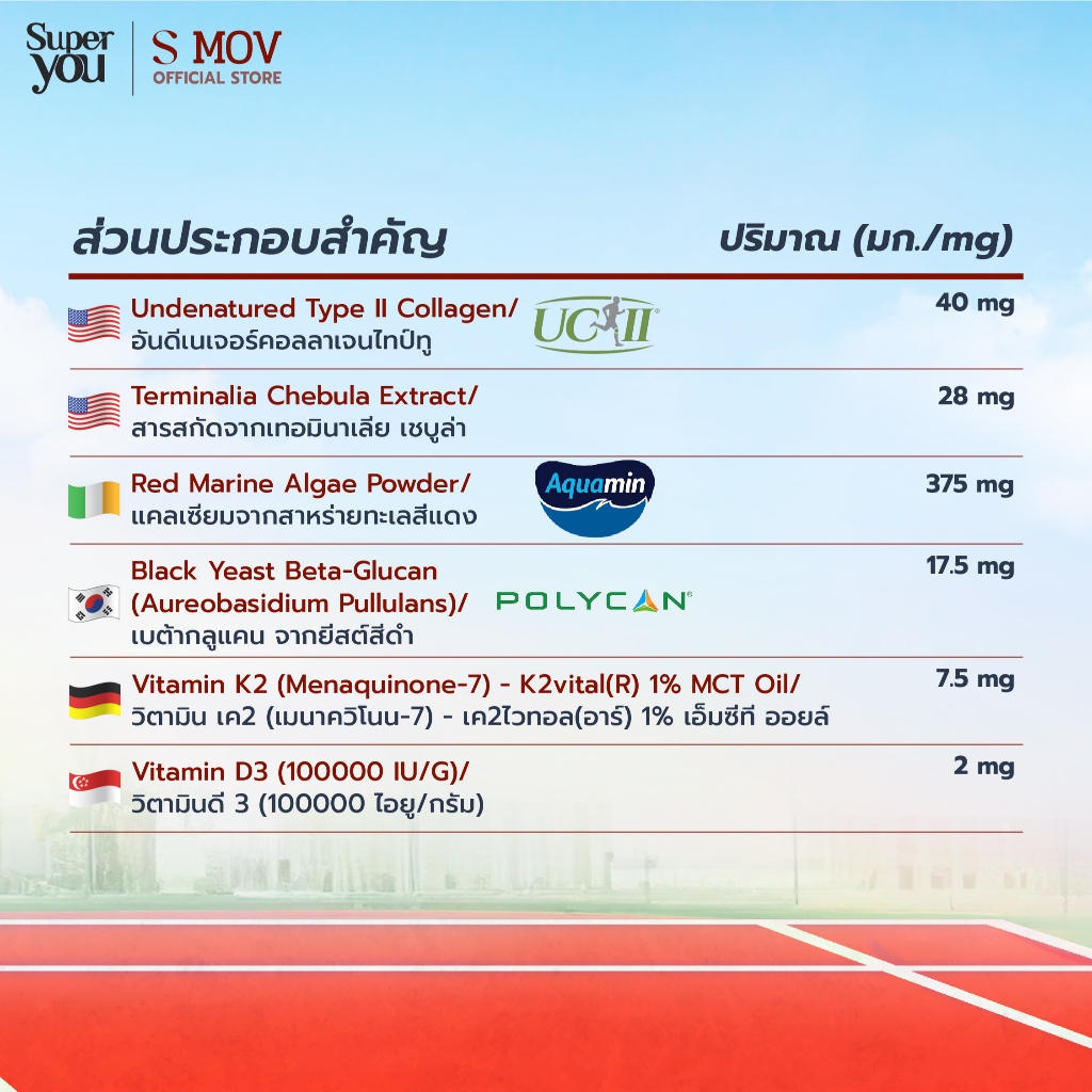 [x3 กล่อง] เอสมอฟ (S MOV) วิตามินสำหรับกระดูกและข้อ (คอลลาเจนไทป์ทู Type II + แคลเซียม) - Super You