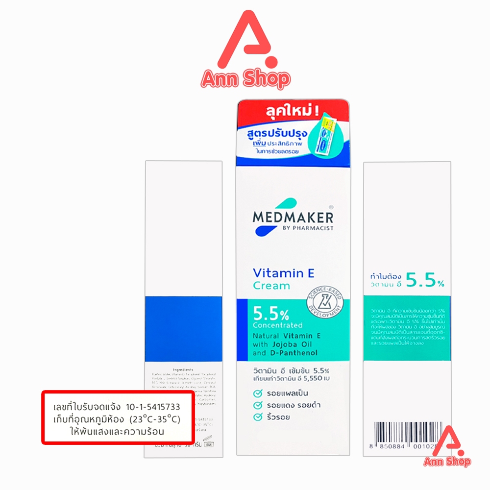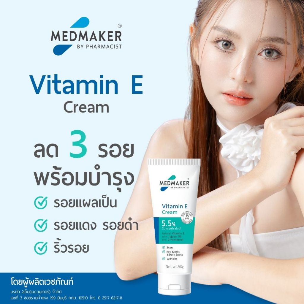 Medmaker Vitamin E Cream เมดเมคเกอร์ วิตามินอี ครีม 20,50 กรัม [1 หลอด] EE 922X กระตุ้นการสร้างเซลล์ผิวหนังใหม่
