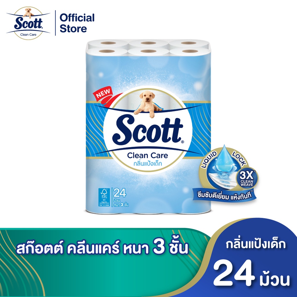สก๊อตต์ คลีนแคร์ กระดาษชำระ กลิ่นแป้งเด็ก หนา 3ชั้น ขนาด 24 ม้วน SCOTT CLEAN CARE Baby Powder Tissue 3 Ply 24 Rolls