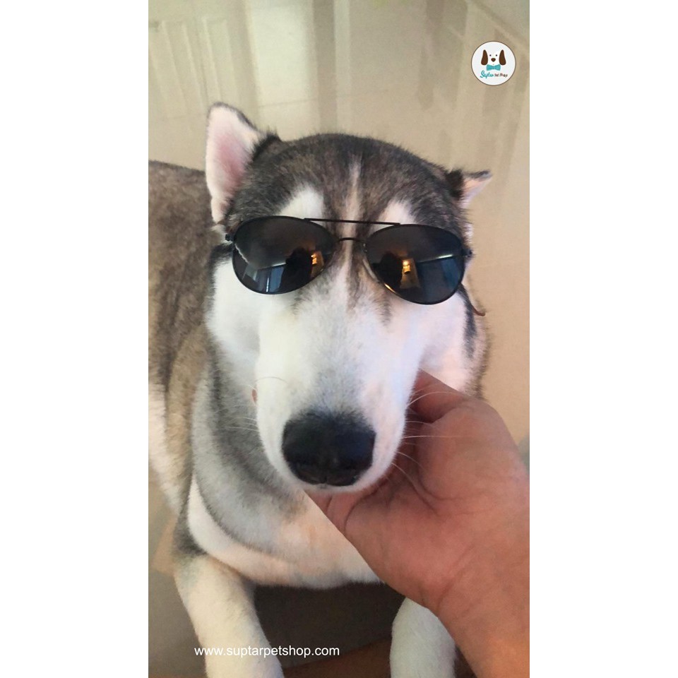 แว่นหมาใหญ่ 10-12 cm มีสายรัด | ทรง Aviator แว่นกันแดดสัตว์เลี้ยง | สำหรับโกลเด้น พิทบูล ไซบีเรียน