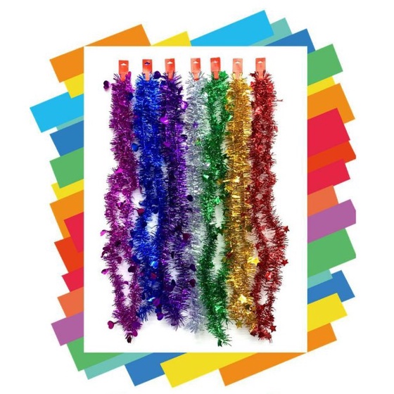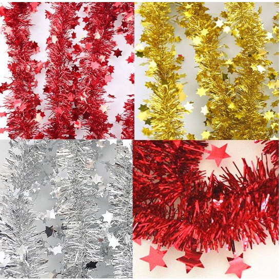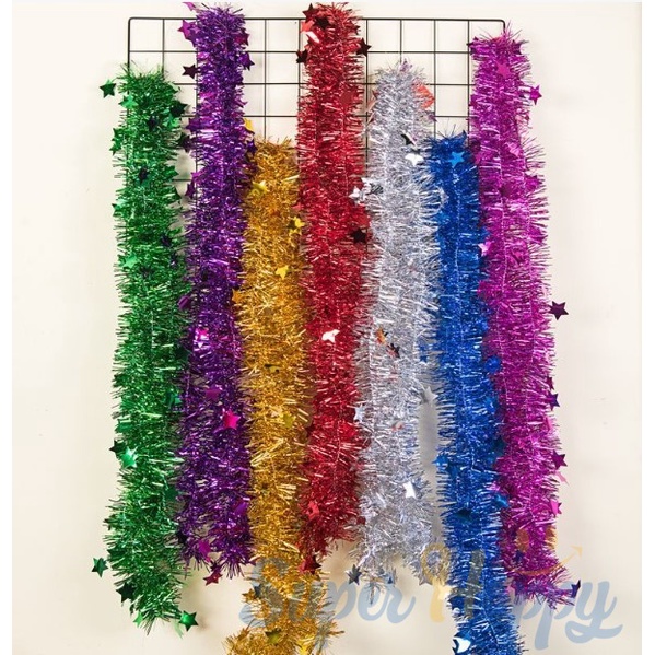 สายรุ้งประดับรูปดาว ยาว 2 เมตร(หนา 7 CM) สายรุ้งปีใหม่ ประดับต้นคริสมาสต์หรือตกแต่งบ้าน Tinsel