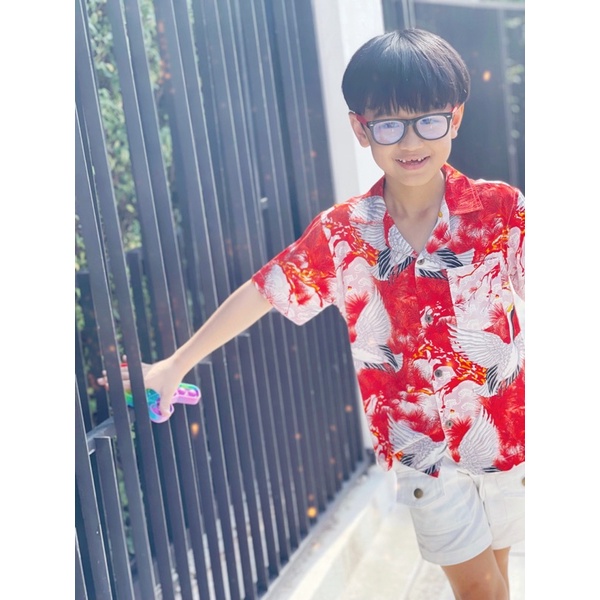 ROAMING HR21 เสื้อฮาวาย ผ้าเรยอนญี่ปุ่น เสื้อครอบครัว Rayon Hawaiian Shirts (สนแดง)