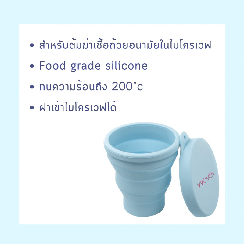 ถ้วยซิลิโคนพับได้ 200 ml สำหรับเข้าไมโครเวฟ ต้มฆ่าเชื้อถ้วยอนามัย