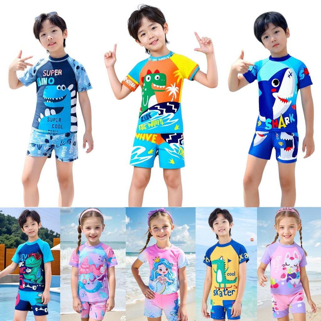 ชุดว่ายน้ำเด็กทูพีช ชุดว่ายน้ำเด็กชายและเด็กหญิงลายการ์ตูนน่ารักสีสวย Y09