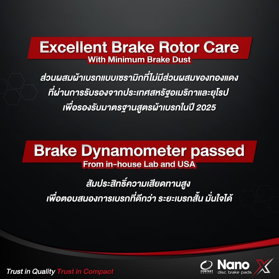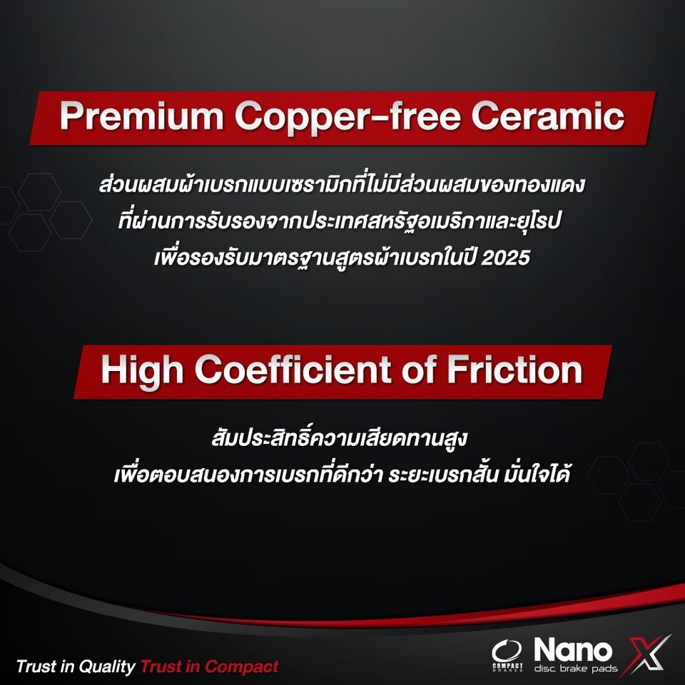 ผ้าเบรคหน้า-หลัง Mitsubishi PAJERO SPORT ปี 16,17,18,19,20,21,22,23 COMPACT NANO X(DEX)คอมแพ็ค นาโนเอ็กซ์ มิซูบิชิ