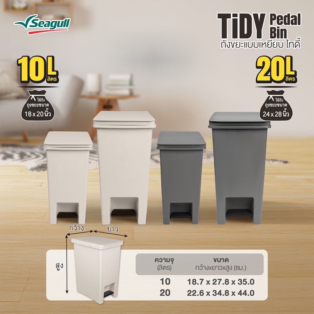 Seagull ถังขยะแบบเหยียบ ไทดี้ Tidy Pedal Bin มีให้เลือก 2 สี 2 ขนาด