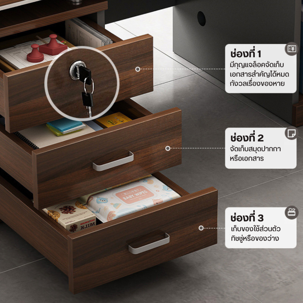 โต๊ะทำงาน โต๊ะผู้บริหาร พร้อมลิ้นชัก สำหรับออฟฟิศ คอมพิวเตอร์ มีให้เลือก 2 สี พร้อมส่ง