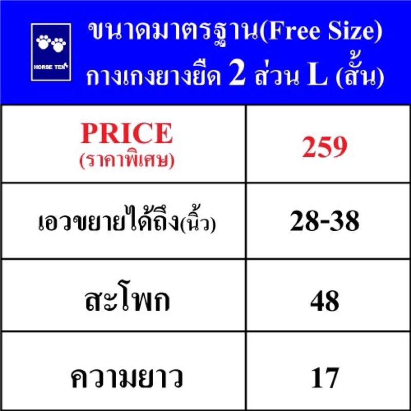 Horse ten กางเกงยางยืดขาสั้น 2 ส่วน L (สั้น) Freesize เอวยืดได้ตั้งแต่ 28-38’No:6074