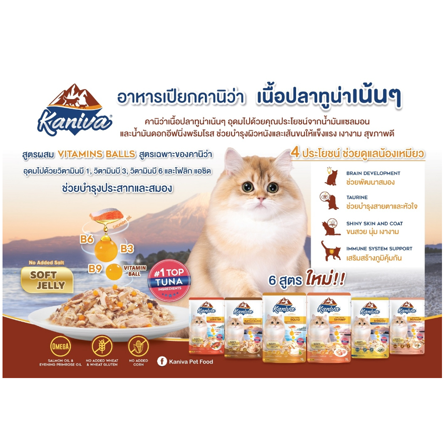 Kaniva อาหารแมวคานิว่า เนื้อปลาทูน่าเน้นๆ ผสมวิตามินบอล 70g.12 ซอง
