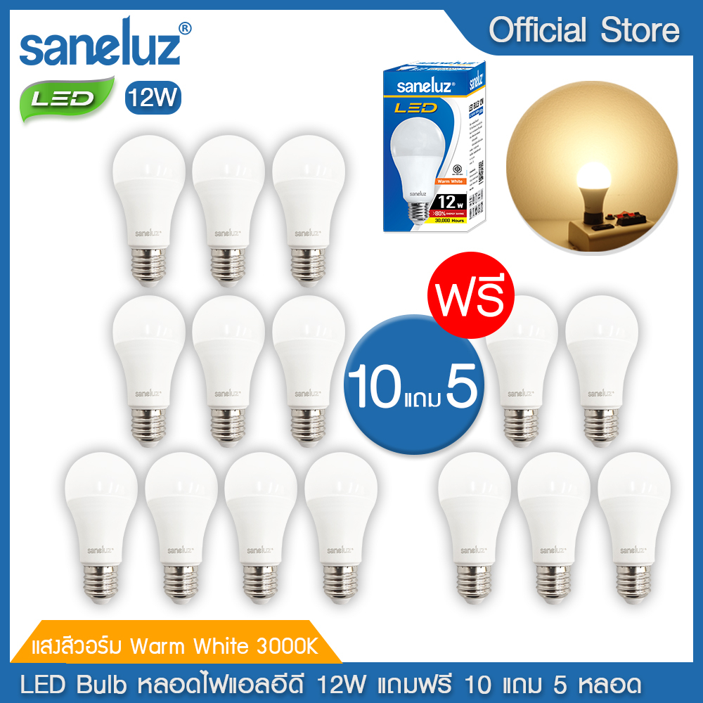 Saneluz 10 แถม 5 หลอดไฟ LED Bulb 12W แสงสีขาวและแสงสีวอร์ม ไฟแอลอีดี หลอดปิงปอง ขั้วเกลียว E27 หลอกไฟ ใช้ไฟบ้าน 220V led