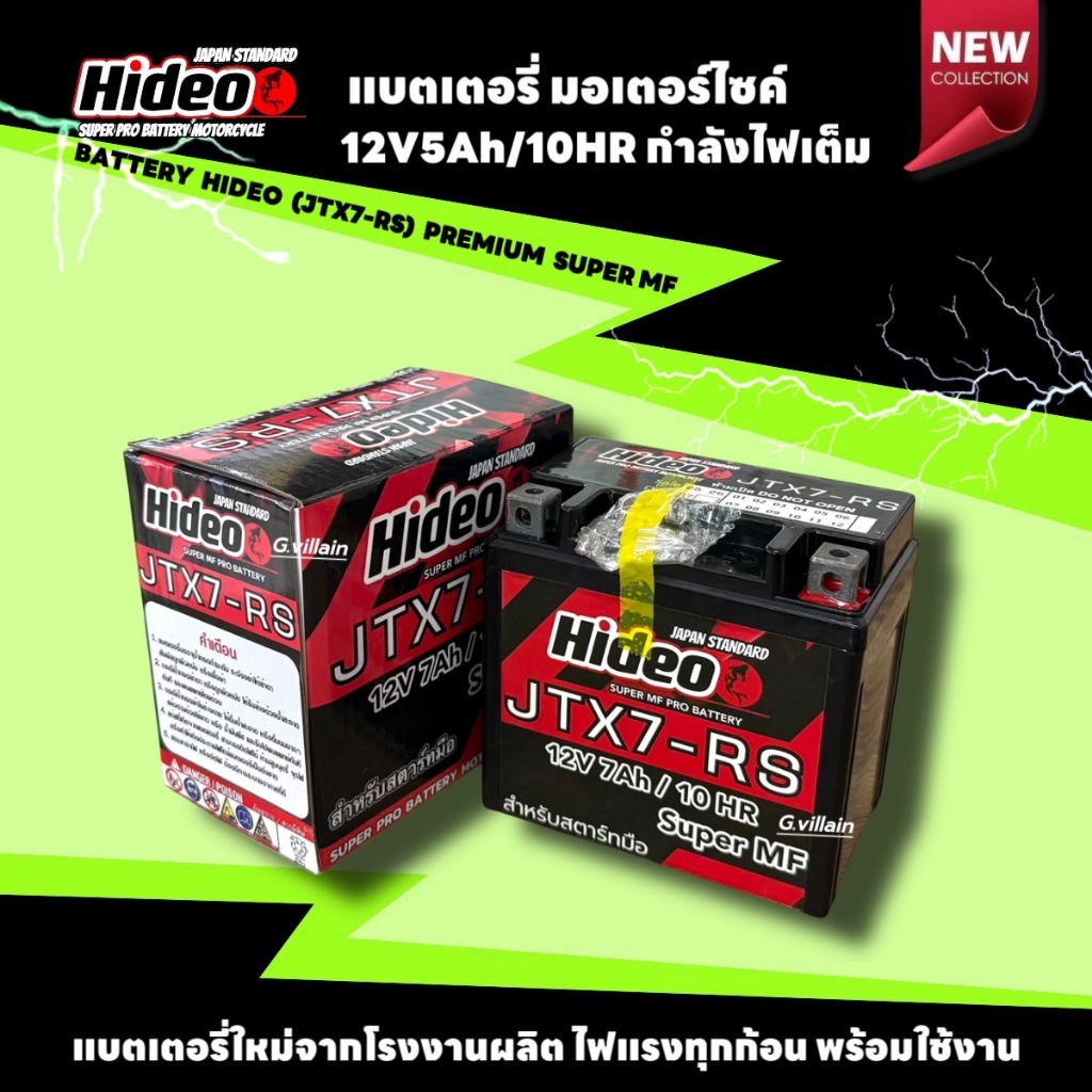 แบตเตอรี่ 12V7Ah สำหรับ ADV150, ADV160 แบตเตอรี่7แอมป์ ยี่ห้อHIDEO เอดีวี150 เอดีวี160 พร้อมใช้งานไม