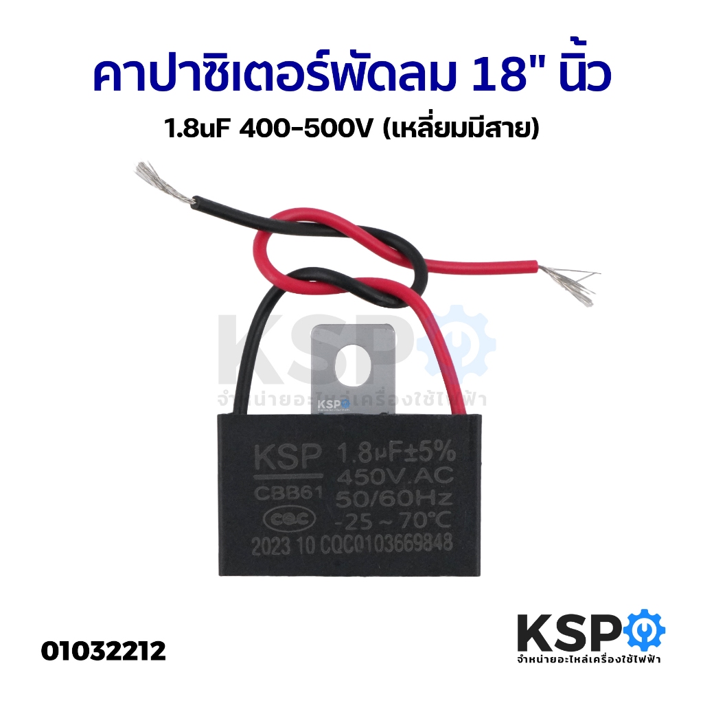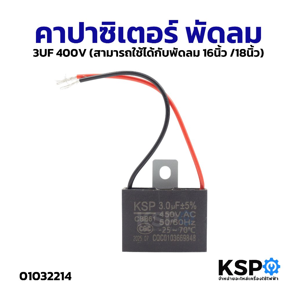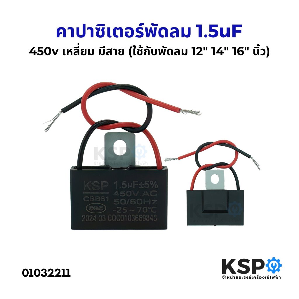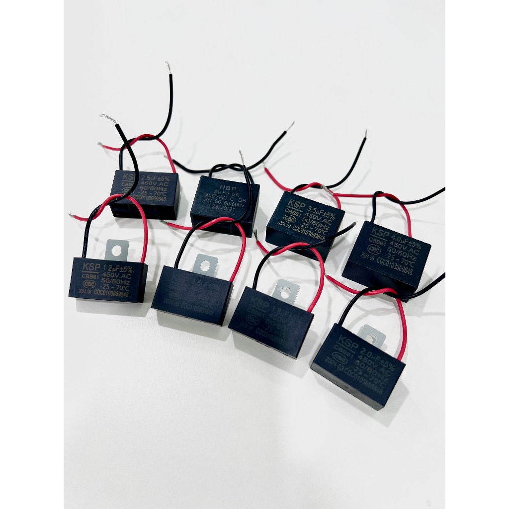 คาปาซิเตอร์พัดลม 1uF / 1.1uF / 1.2uF / 1.5uF / 1.8uF / 3uF / 4uF / 6uF (มีขั้ว/มีสาย) อะไหล่พัดลม