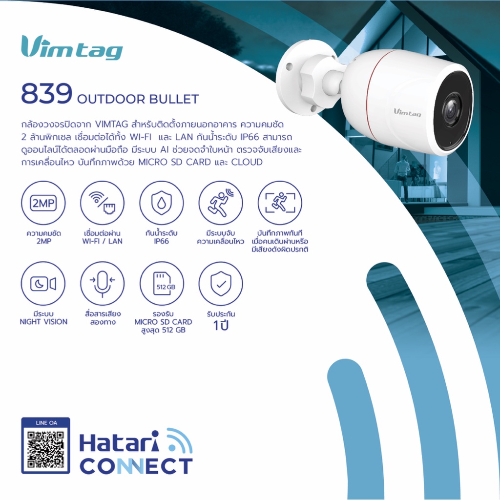 กล้องวงจรปิด Hatari Connect Vimtag 839 Outdoor Bullet | Smart Cloud IP Camera
