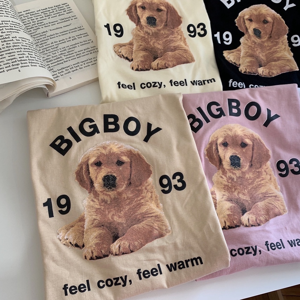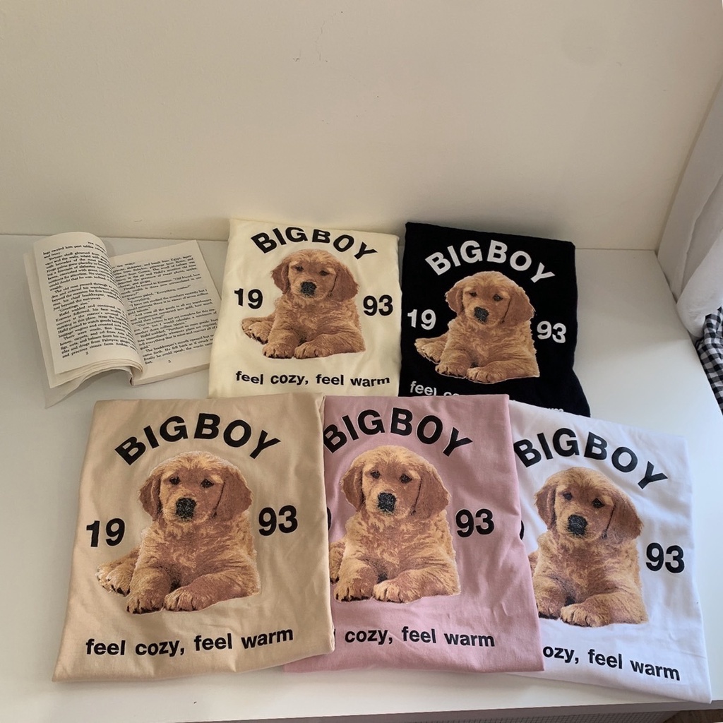 S258 เสื้อยืด oversize ผ้าคอตตอน สไตล์ minimal สกรีน น้องหมา BIGBOY 1993