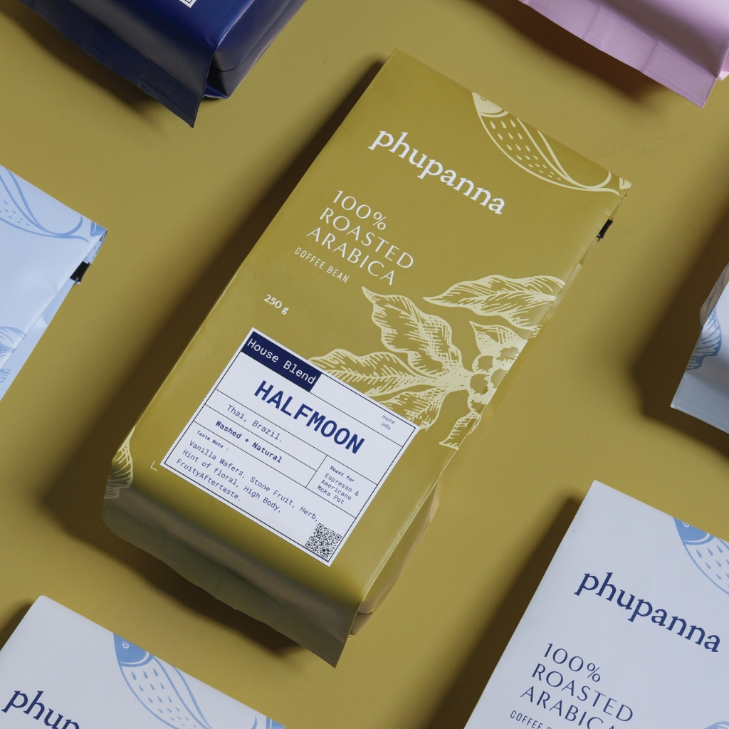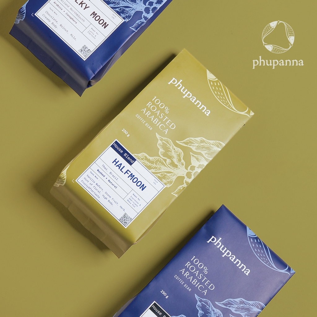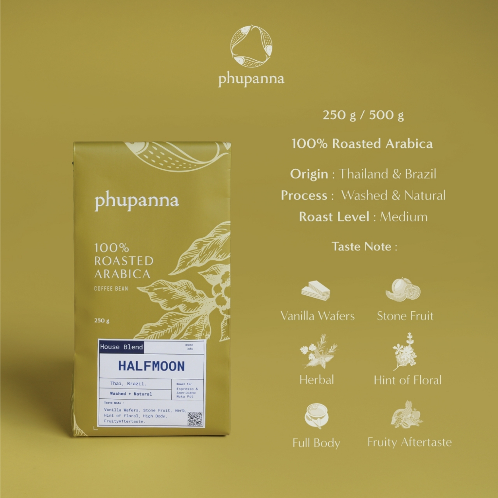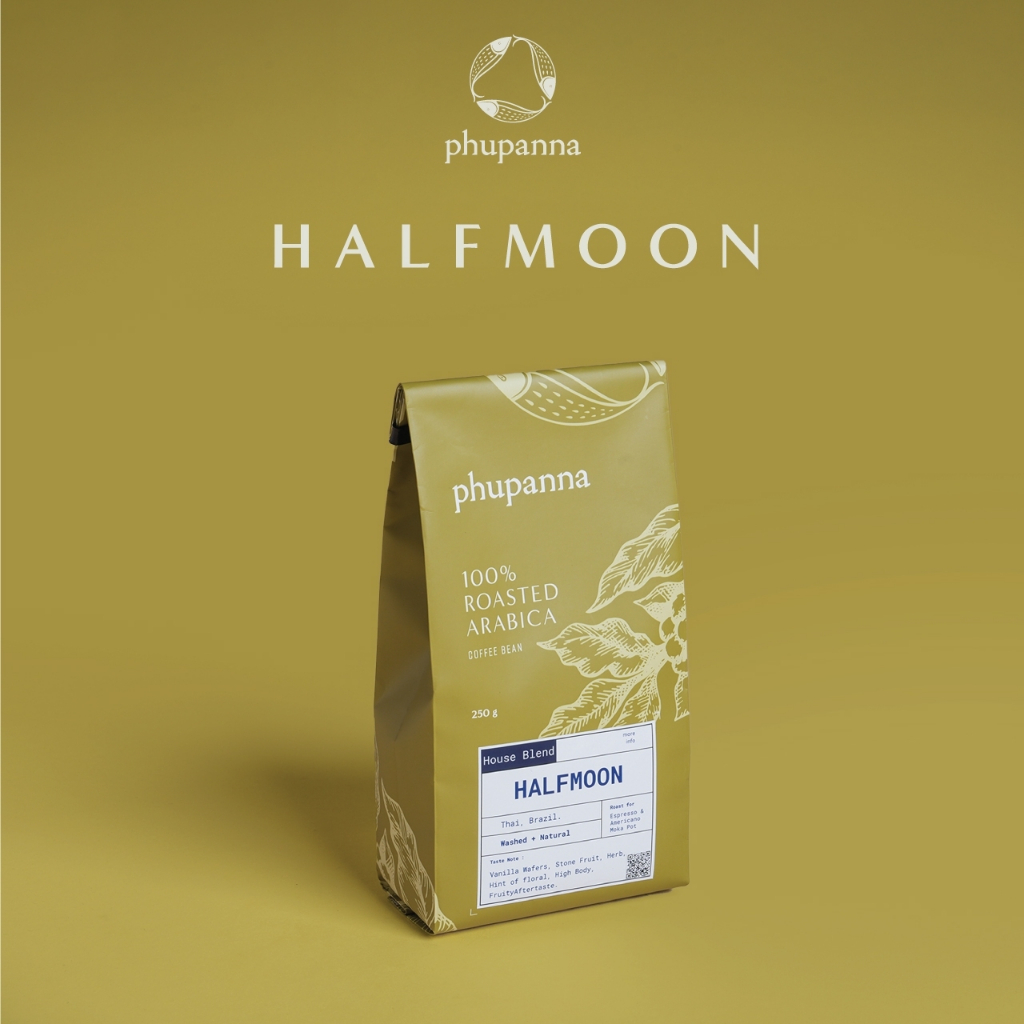เมล็ดกาแฟคั่วกลาง (Medium Roast) สูตร Half Moon (Bold) 500 กรัม / Arabica100%
