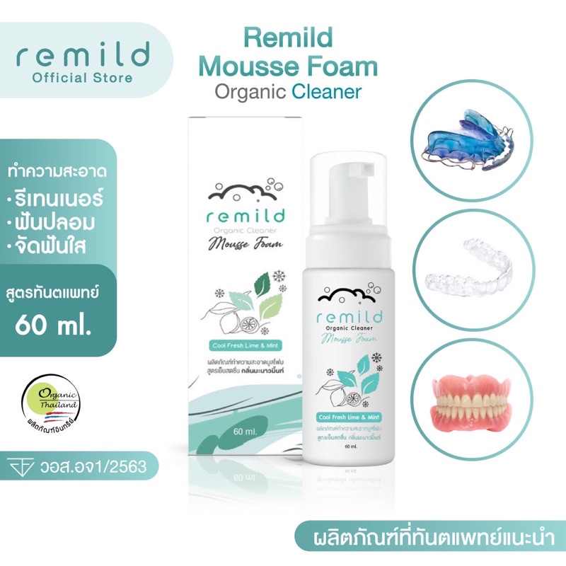 Remild mousse foam มูสโฟมทำความสะอาด รีเทนเนอร์ จัดฟันใส ฟันปลอม ที่ทันตแพทย์แนะนำ Organic cleaner ขนาด 60 ml
