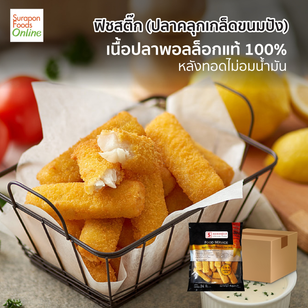 Surapon Foods ฟิชสติ๊ก(ปลาคลุกเกล็ดขนมปัง)(Fish Stick) ยกลัง บรรจุ 8 แพ็ค/ลัง 24ชิ้น/แพ็ค