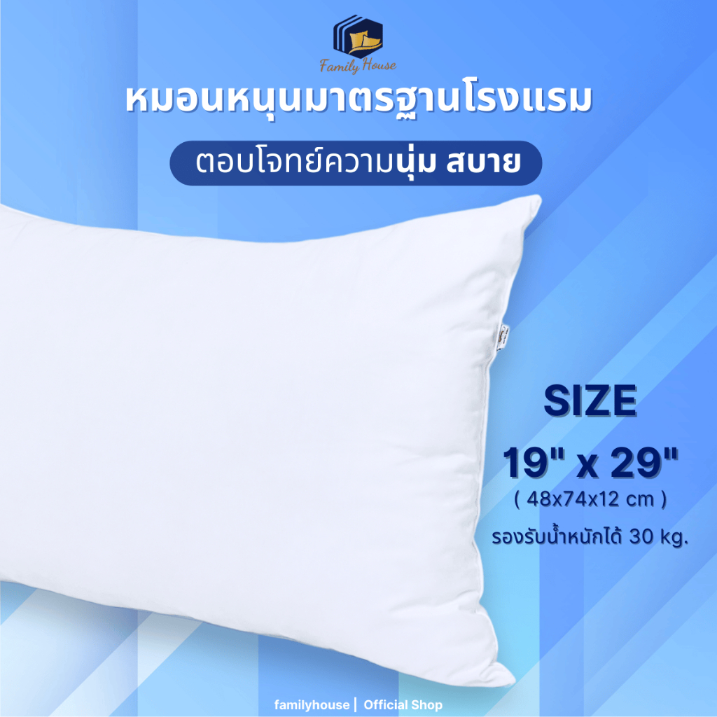 familyhouse |หมอนหนุนเกรดโรงแรม FIBERBALL/ POLYESTER นุ่มแน่น นอนสบาย น้ำหนักเบา_Pillow